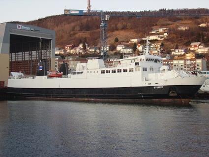 MF Stetind has a speed of 14.5 knots, a salon above deck, and a drive-through height of 4.4 meters.
